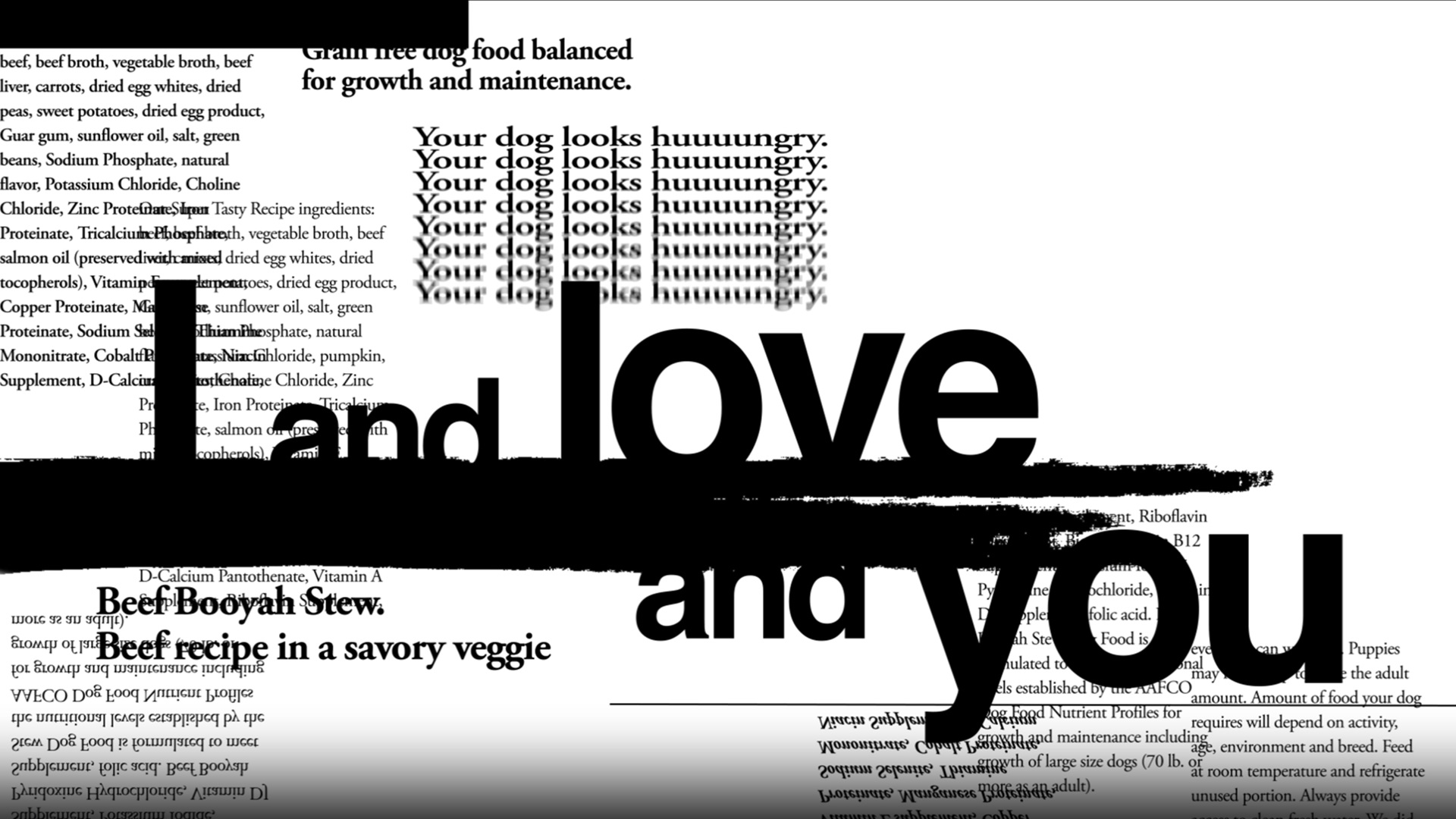 Who wants to eat?! A typographic motion title graphic for a dog food brand I and Love and You using Adobe AfterEffects, this 30-second clip is a brand reimagined.