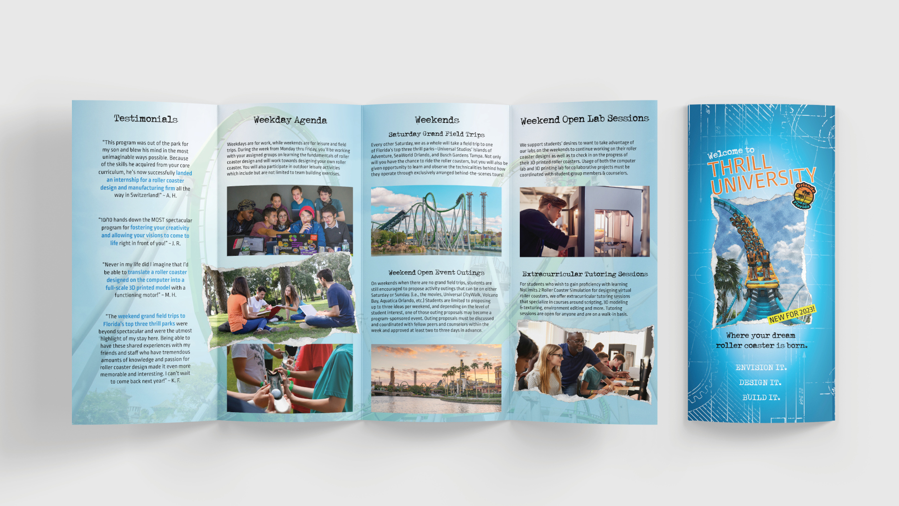 An entirely unique fictional summer camp program based in Orlando, Florida centered primarily around roller coaster and theme park design, specifically for those passionate about pursuing a degree in either design or mechanical engineering.